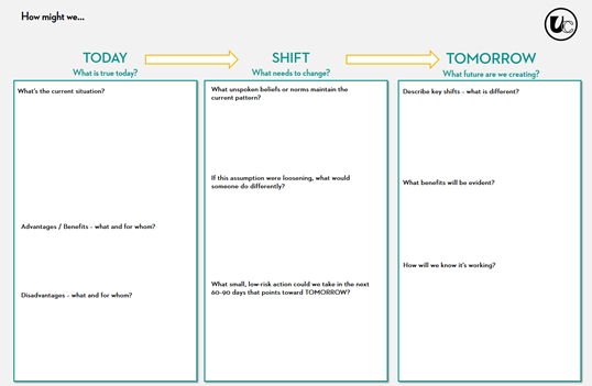 What has to happen between TODAY and TOMORROW? This is the liminal space where we identify: